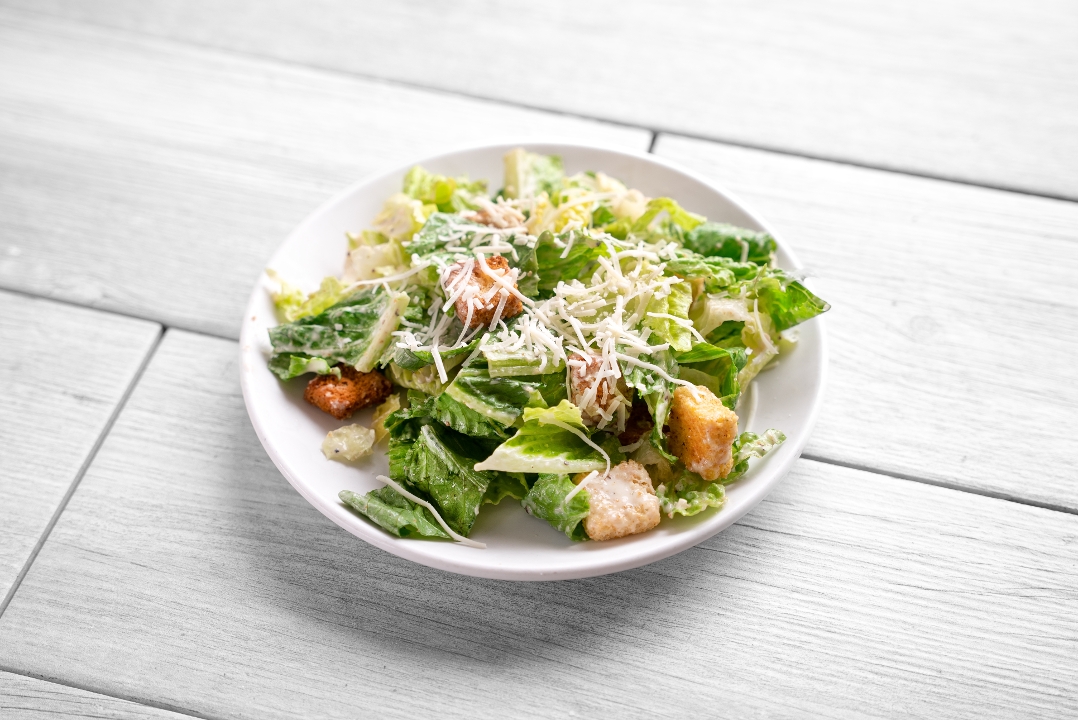 Crisp Romaine lettuce tossed with Romano, Asiago cheese, & Caesar dressing.