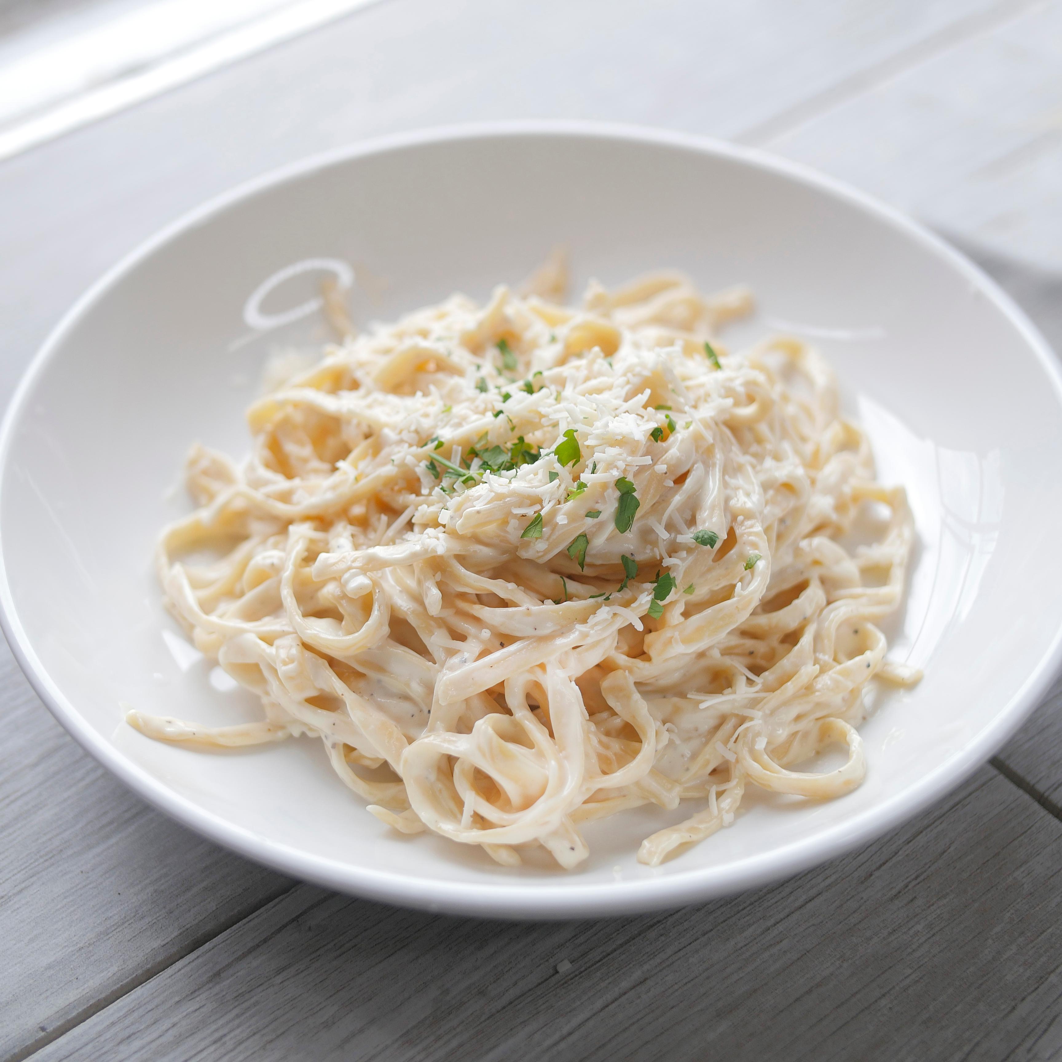 Ribbon pasta served in our savory cream sauce and topped with asiago cheese.